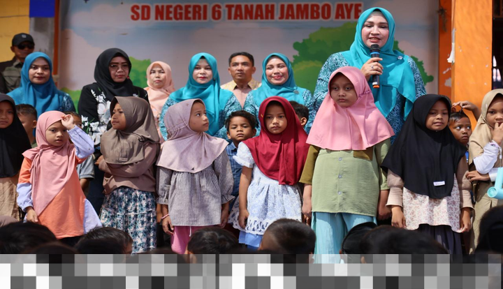 Kak Na Kunjungi SD 6 Tanah Jambo Aye dengan Seragam Bantuan dan Paket Makanan Ikan